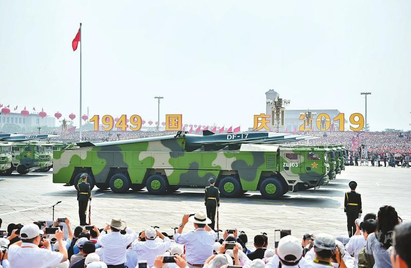 戰略打擊模塊1日壓軸出場。由張建強少將、王新國少將率領的東風-17常規導彈方隊,作為這個模塊的第一個方隊,威武莊嚴地通過天安門,光榮接受檢閱。