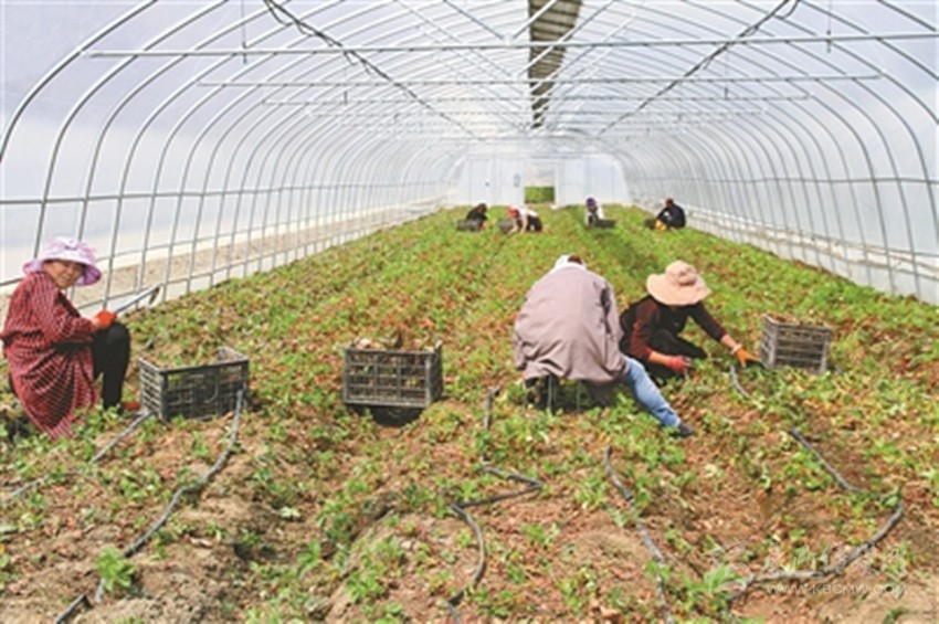 呷巴鄉鐵索村老百姓世世代代都以種植青稞為生,一畝地的收益僅有兩三百元。雖然全村有1500多畝耕地,2016年,村里建檔立卡的貧困戶人均年收入只有2000多元。為提高當地農牧民的收入,康定市決定幫助該村發展蔬菜大棚,草莓、番茄、白菜成為市民的搶手貨。2017年總產量就接近300萬斤,實現產值100多萬元。全村走出了一條“以蔬菜產業為支撐,以休閑采摘促增收”良性循環發展的脫貧之路。